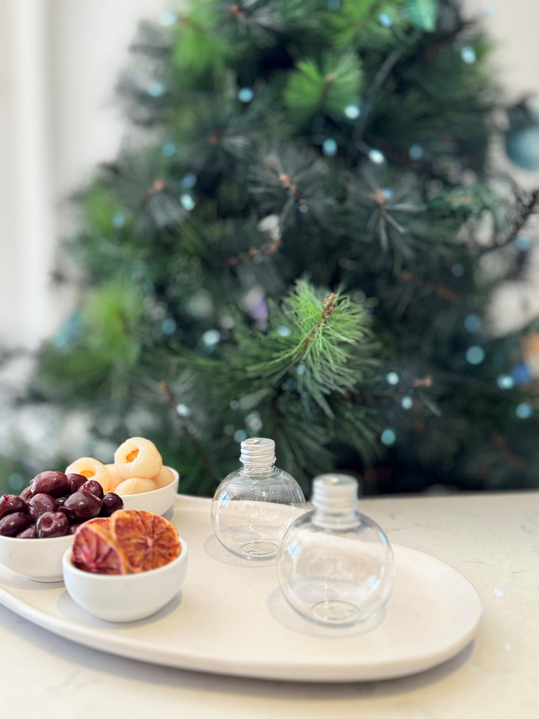 Guests can fill their own baubles and glasses, then garnish and pour!