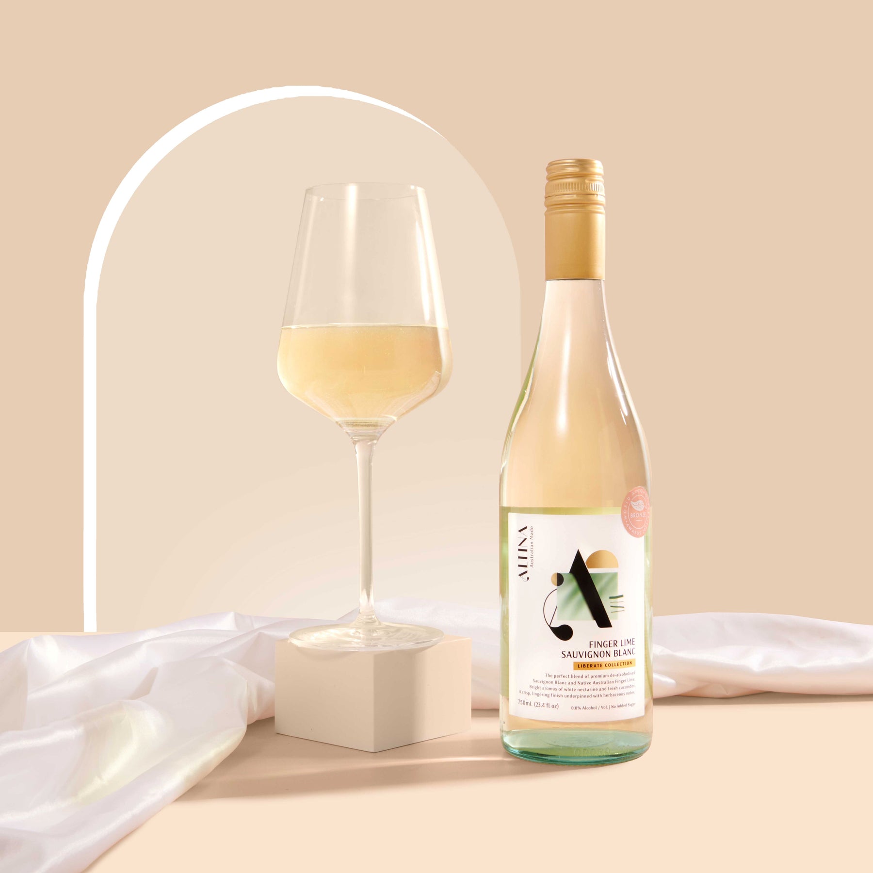The perfect blend of premium de-alcoholised Sauvignon Blanc wine and Native Australian Finger Lime. Bright aroma of white nectarine and fresh cucumber. A crisp, lingering finish underpinned with herbaceous notes.